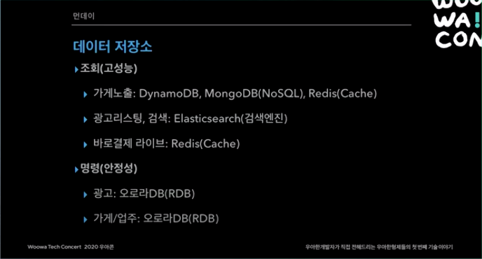 성능이 중요하면 레디스, DDB 쓰고, 검색 같은 곳은 엘라스틱 서치 쓰고.. 시스템에 맞는 것을 씀