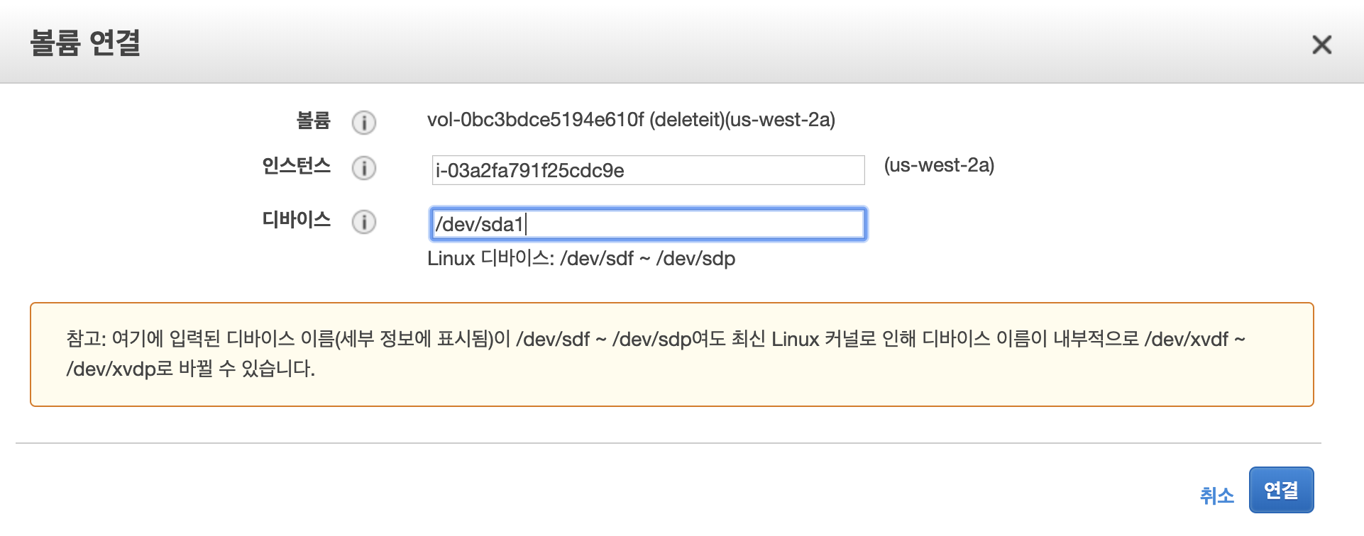 루트 볼륨은 /dev/sda1 로 마운트 해줘야 되더라. (리눅스 기준)