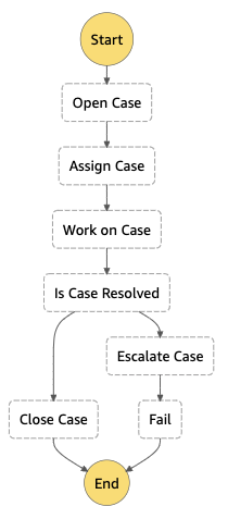 "Comment": "A simple AWS Step Functions state machine that automates a call center support session.",