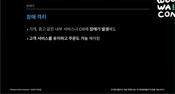 가게나 광고 같은 서비스에는 장애가 생긴다 하더라도, 주문까지는 무조건 가능해야 한다.